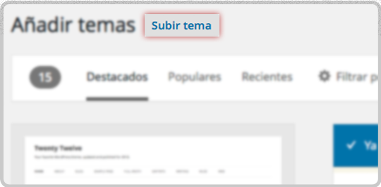 A continuación, debes hacer click en el botón "Añadir nuevo", y en la pantalla siguiente también hacer click en el botón "Subir tema".